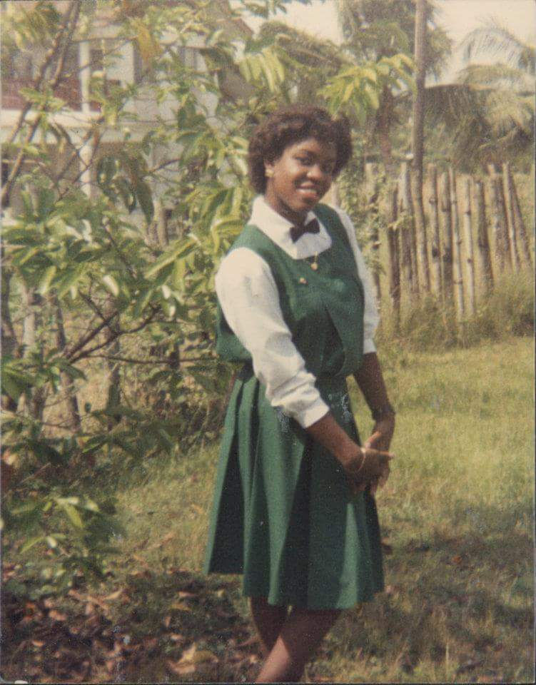 STC's CAMPUS circa 1987: Senior Mirielle Glover (Doe), Frisky Class of 1987, poses for a pic, preserving memories of her last year St. Teresa's Convent.